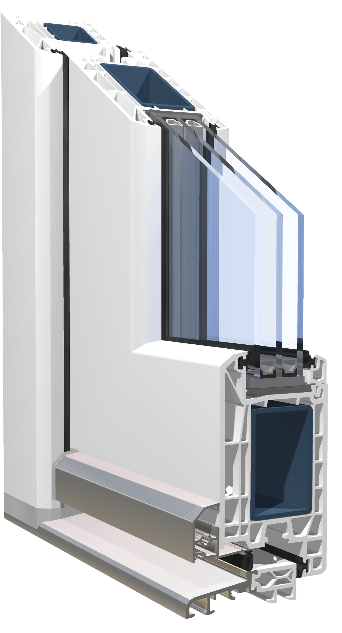 Система Kömmerling 76AD по праву относится к профилям нового поколения. При достаточно компактных габаритах конструкция имеет отличные показатели жесткости и теплоизоляции, которые обычно характерны для более массивных систем.
