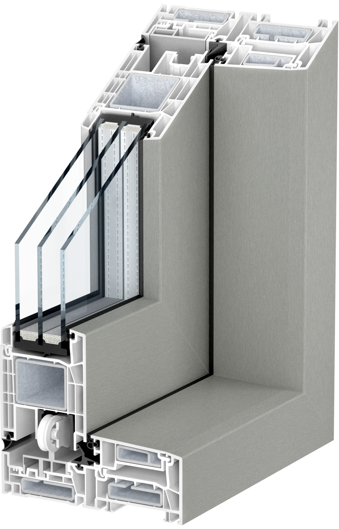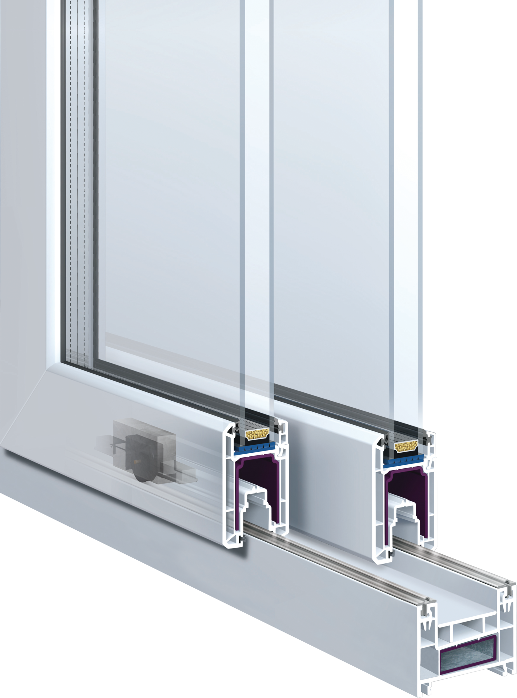 Гибкая система раздвижных дверей Kömmerling PremiLine идеально адаптируется к любым пространствам. Конструкция может включать до 4 створок, при этом наличие третьей направляющей позволяет устанавливать дополнительную створку.